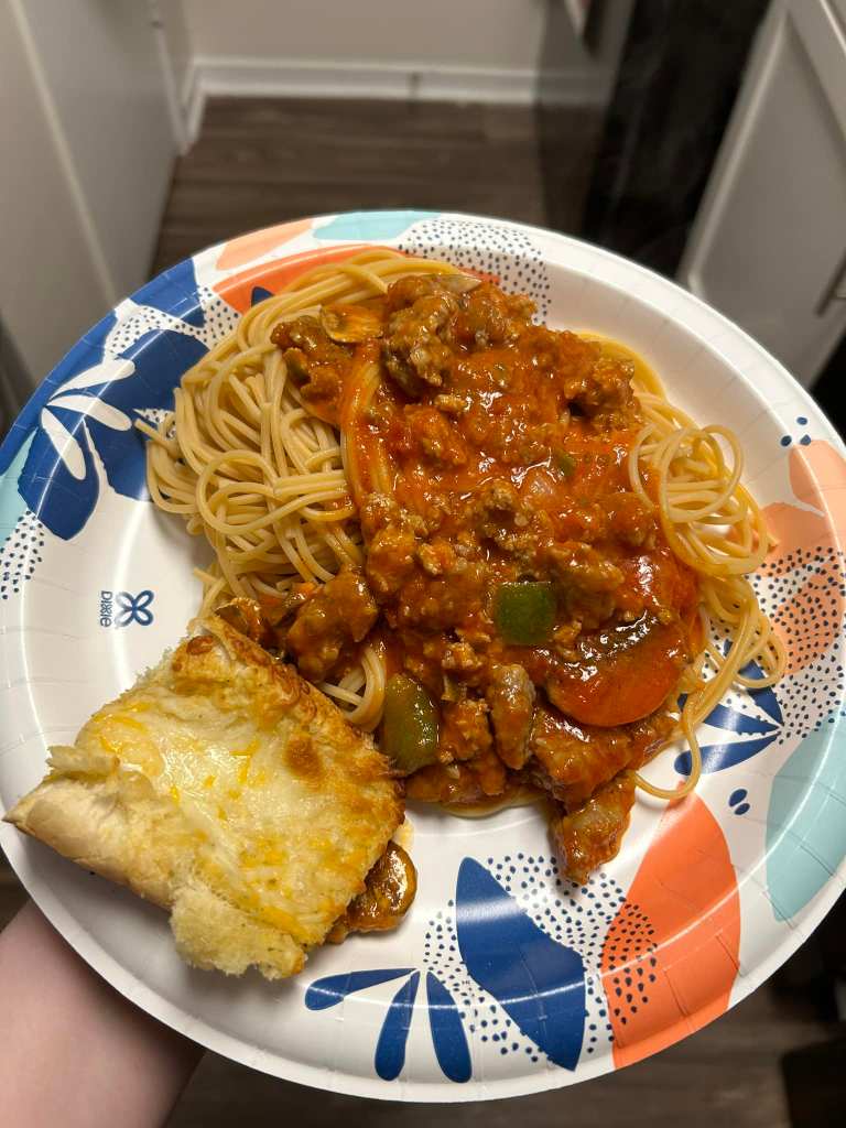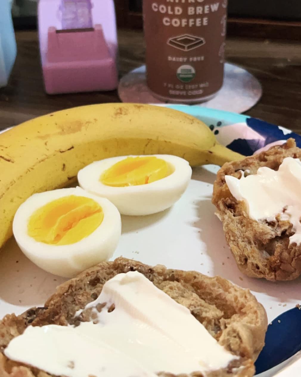 So far, I’ve made a fairly cheap breakfast that’s not too high in calories: a boiled egg, cinnamon raisin English muffin with cream cheese, and a banana. Then I’ll grab a Rise Brewing Co. Nitro Cold Brew Coffee in Oat Milk Mocha from Kroger (or get it in bulk when I can afford it on Amazon). I get fiber, grains, protein, fruit, and a caffeinated treat to give me an extra boost. For dinner, I’ll sometimes make a tummy-friendly butter chicken, stir fry, or spaghetti with a chunky veggie and meat sauce to ensure I have enough leftovers. I love to have rice, protein, fiber, and a tasty sauce.